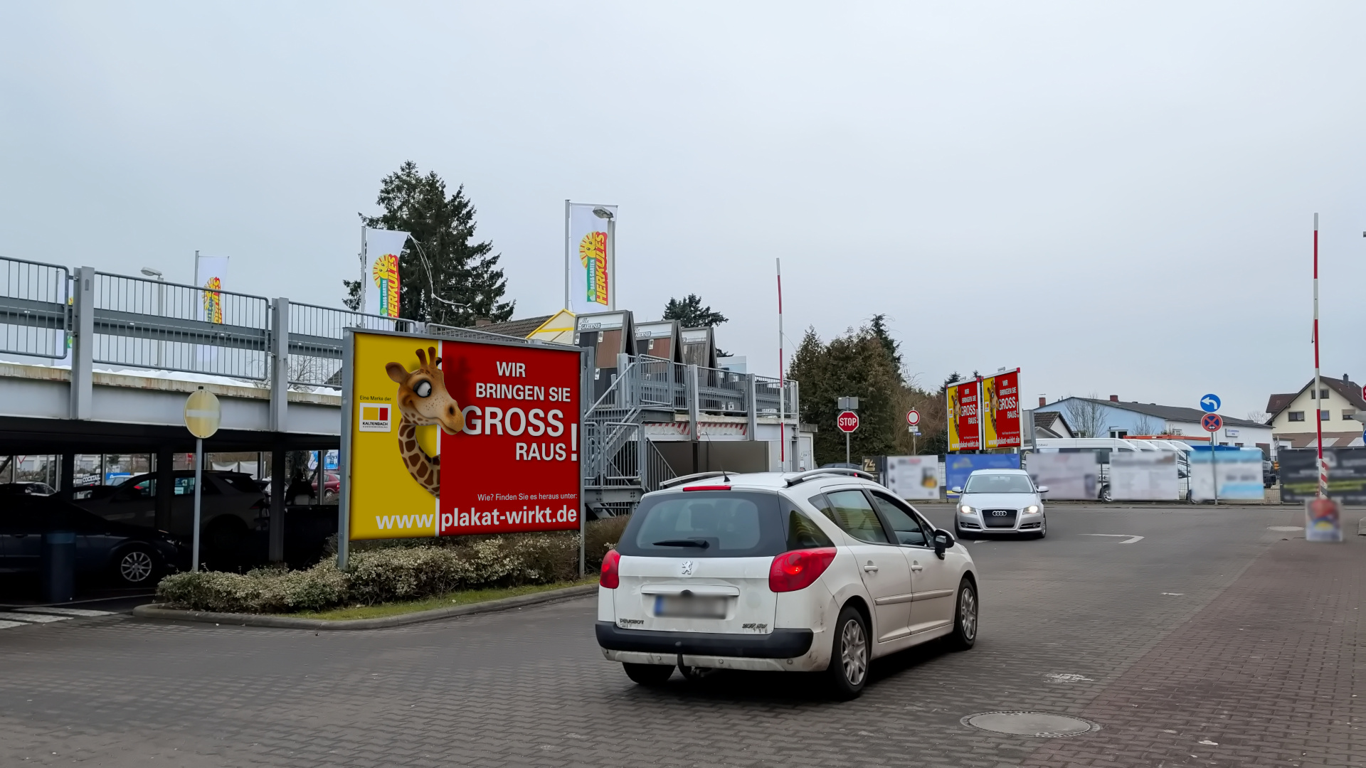 Der Werbestandort am Herkules SB-Warenhaus in Nidda zählt zu den attraktivsten Einzelhandelsknotenpunkten der Region. Neben dem großflächigen SB‑Warenhaus befindet sich direkt angrenzend ein gut frequentierter Bau- und Gartenmarkt. Diese Kombination macht den Standort für Außenwerbung besonders wertvoll: Ein breites Kundenspektrum, vielfältige Einkaufsanlässe und lange Aufenthaltszeiten sorgen für hohe Kontaktzahlen und eine starke Sichtbarkeit.